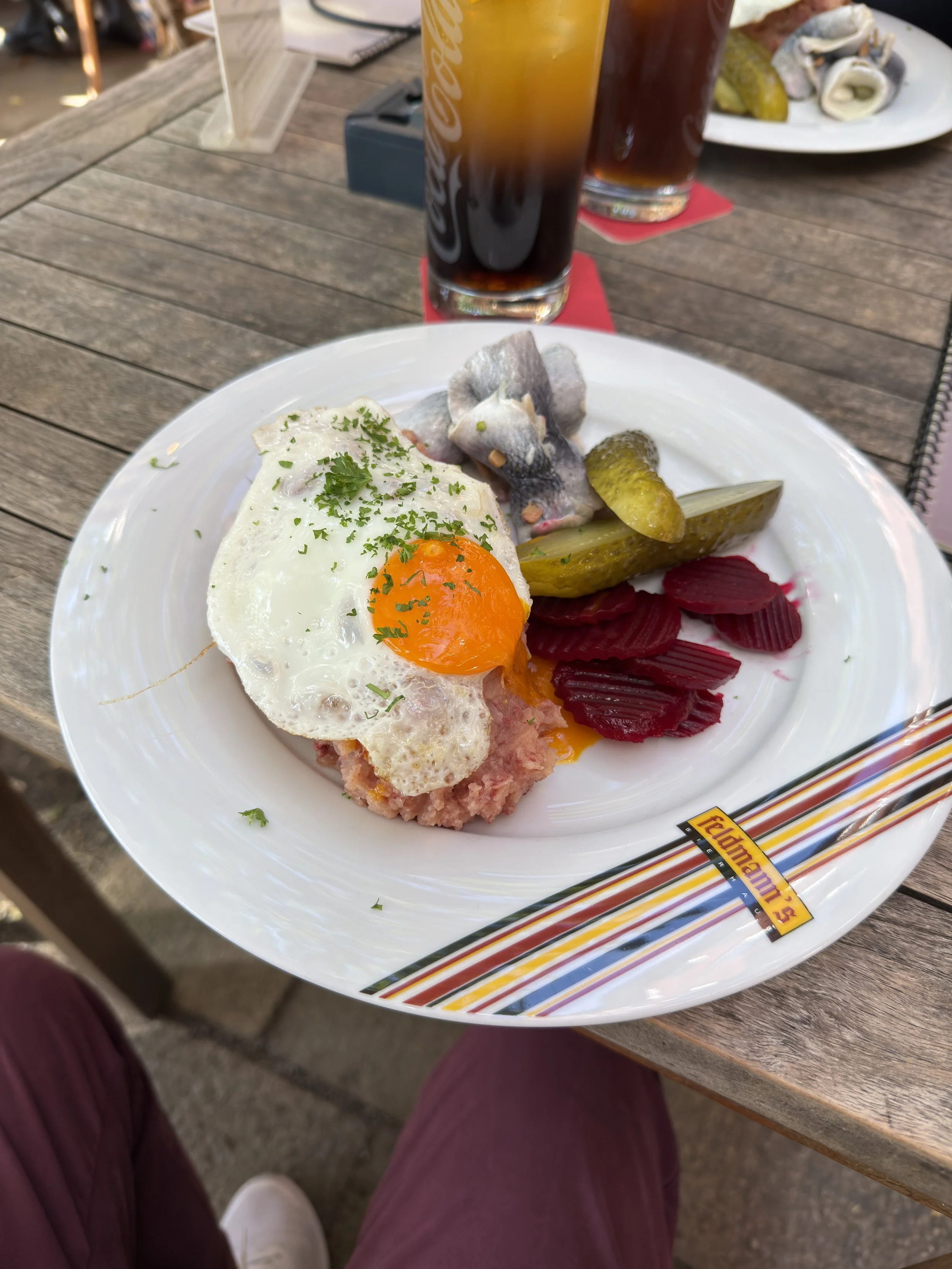 The next day we explored Bremen together. We didn’t have much time for photos and opportunities either, but finished with a sailor’s feast: Labskaus, a northern German dish of corned beef, potatoes, onions, served with beetroot and pickled herring or cucumber. In Bremen, it comes with a “Rollmops”, a pickled herring rolled around a pickle.